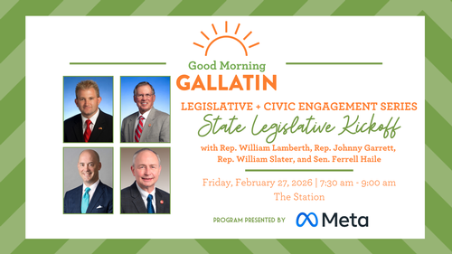 Good Morning Gallatin allows members to ‘wake up to what’s trending’ with local, county, and state elected officials. The 4th Friday of each month, we take a deep dive into hot topics related to various legislation, business, and community happenings. This month, we hear from Reps. Lamberth, Garrett, Slater, and Sen. Haile.